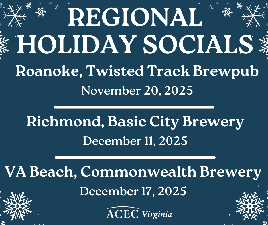 This holiday season, ACEC Virginia is proud to support Toys for Tots at our Regional Holiday Socials. Bring a new, unwrapped toy and help brighten the holidays for a child in need.
